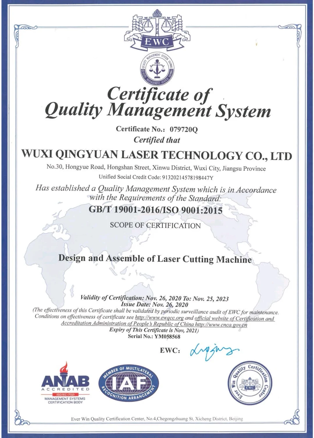 Wuxi Qingyuan Laser Technology Co., Ltd. er en professionel producent af CNC laserskæremaskiner, herunder fiberlaserskæremaskiner og YAG laserskæremaskiner. Vores laserskæremaskiner bruges i vid udstrækning til skæring af metalplader på forskellige områder såsom mekanisk udstyr, elektrisk udstyr, metalfabrikation, præcisionskomponenter, gaveproducenter, bildele og reklame. Qingyuan er en hi-tech virksomhed med uafhængig intellektuel ejendomsret og 5 patenter . Mere end 10 eksperter og ingeniører brugte 5 år på at udvikle den første laserskæremaskine. Samtidig samarbejder vi altid med professorer i forskningsinstitutioner og universiteter og endda eksperter fra Tyskland, Japan og USA. Vi fokuserer på små laserskæremaskiner på mindre end 1.000W. Vores produkter har mange fordele, såsom høj fotoelektrisk konverteringseffektivitet, laserstråle af høj kvalitet og stabil ydeevne. Vi er stolte over, at vi er i den førende position i Kina. Især for YAG solide laserskæremaskiner er tykkelsen og skærehastigheden den bedste i Kina. Vi overholder altid forretningsfilosofien om" Vind markeder med avancerede teknologier, belønningskunder med de bedste tjenester" ;. Derfor lykkes det os at markedsføre, selvom vi er en ung virksomhed inden for dette område. Det vigtigste er, at vi altid undersøger kravene til forskellige applikationer. Vi designer nye modeller til specielle applikationer for at tilfredsstille kunder.Vores produkter er meget populære på hjemmemarkedet, og vi eksporterer varer til Asien, Sydamerika og Mellemøsten. Vi vil blive ved med at forbedre kvaliteten og perfektionere kundeservice for at vokse sammen med kunderne." Fremragende kvalitet, perfekt ledelse, koncentreret service" er vores evige jagt.